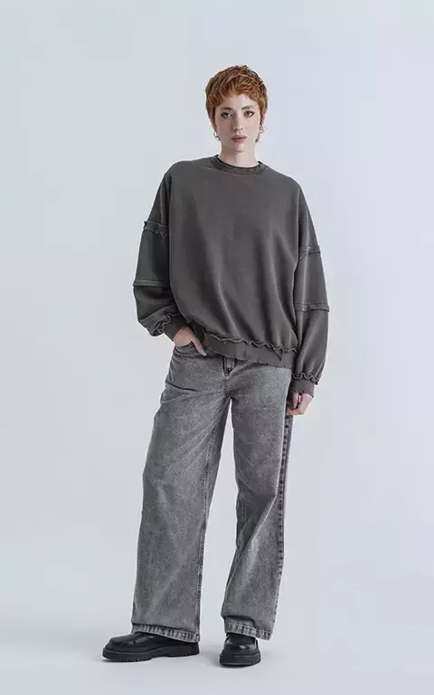 Buzo oversize con costuras a la vista – Marrón vintageCon una vibra retro y streetwear, este buzo oversize se destaca por su tono marrón desgastado y sus costuras expuestas que recorren el cuerpo y mangas, generando textura y estilo. El diseño incluye terminaciones deshilachadas y un leve fruncido en puños y cintura, que aportan un look relajado pero con carácter.Confeccionado en algodón suave y resistente, es ideal para usar solo o en capas, perfecto para outfits cómodos pero con mucha identidad.